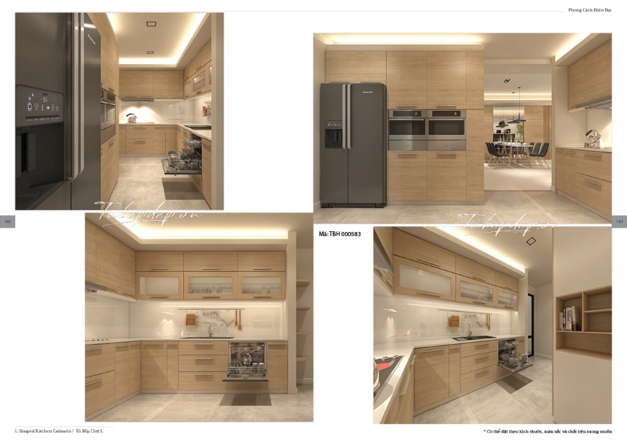 Thiết kế nội thất phòng bếp gỗ công nghiệp hiện đại, tiện nghi
