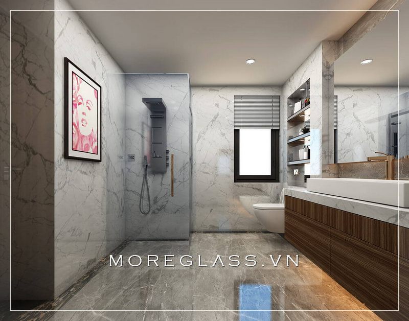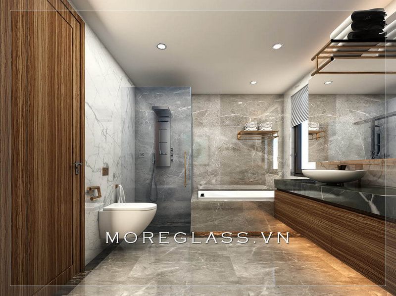 Mẫu thiết kế nội thất nhà tắm hiện đại, tiện nghi với cửa sổ kính lớn cho nhà phố, khách sạn, biệt thự cao cấp