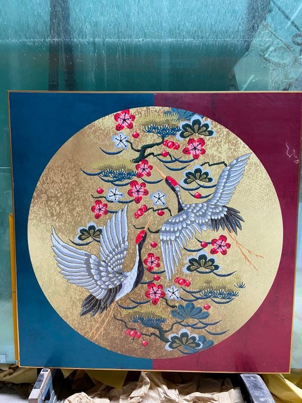 Mẫu tranh điêu khắc chim hạc phong cách Nhật Bản trên chất liệu kính cường lực được tạo ra với mong muốn giúp gia chủ có được sự bình yên và hạnh phúc.