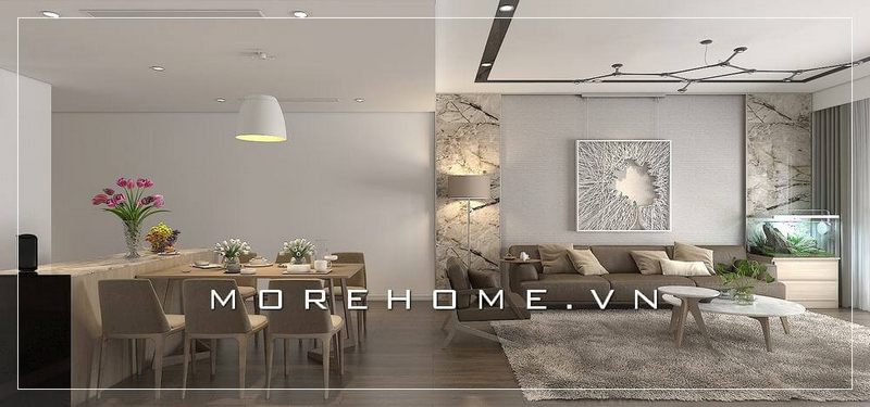 . Không gian sinh hoạt chung cư được bố trí một cách hợp lí, không chỉ mang lại sự sang trọng và thanh lịch mà còn có đầy đủ tiện nghi.